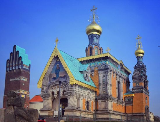 - Mathildenhöhe, mehr kulturell, die Mathildenhöhe ist vom Jugendstil geprägt, der Fünffingerturm das Wahrzeichen von Darmstadt.