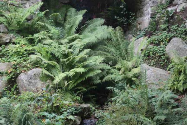 Ein seltener heimischer Farn ist der Königsfarn. Er wächst auf moorigen Böden oder an feuchteren Stellen. Im Garten erreicht er Höhen etwas über 1 Meter und Durchmesser ebenfalls von 1 Meter. In einem nord-Italienischen Garten sah ich ein über 100jähriges Exemplar. Diese alte Pflanze hatte eine Höhe von über 250 cm und einen Durchmesser von ca. 3 Meter.