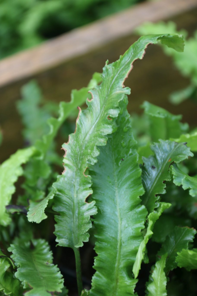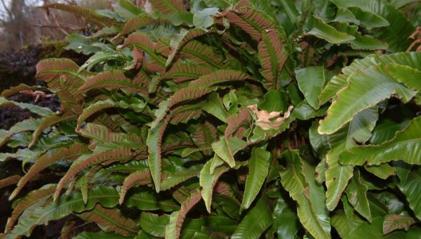 Asplenium scolopendrium gehört zu den heimischen Farnen. Eine Besonderheit bei dieser Farnpflanze ist, dass die Wedel zungenförmig ausgebildet sind und nicht gefiedert sind. Er ist kalkliebend und wintergrün. An zusagenden Stellen säht er sich selber im Garten aus, wobei er Mauerritzen und Spalten bevorzugt.