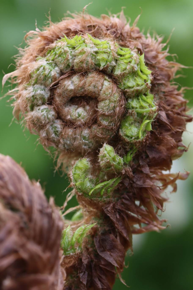 In unserem Hof steht fühlt sich in geschützter, schattiger Ecke Woodwardia unigemmata sehr wohl. Ein fantastischer Farn mit bis zu 1,50 m langen Wedeln. Die Wedel sind immergrün und der Austrieb bronzerot. Eine eindrucksvolle und edle Erscheinung mit tropischem Flair.